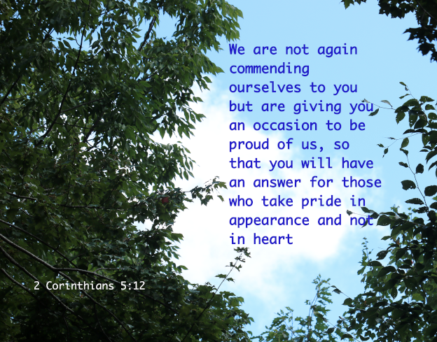 We are not again commending ourselves to you but are giving you an occasion to be proud of us, so that you will have an answer for those who take pride in appearance and not in heart.