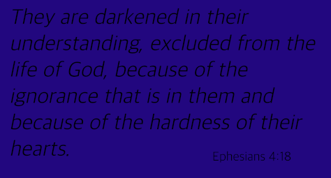 They are darkened in their understanding, excluded from the life of God, because of the ignorance that is in them and because of the hardness of their hearts.