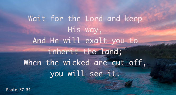Wait for the Lord and keep His way, and He will exalt you to inherit the land; when the wicked are cut off, you will see it.