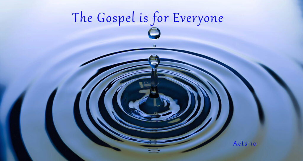 I am in Acts 10 and the theme is the Gospel is for Everyone
